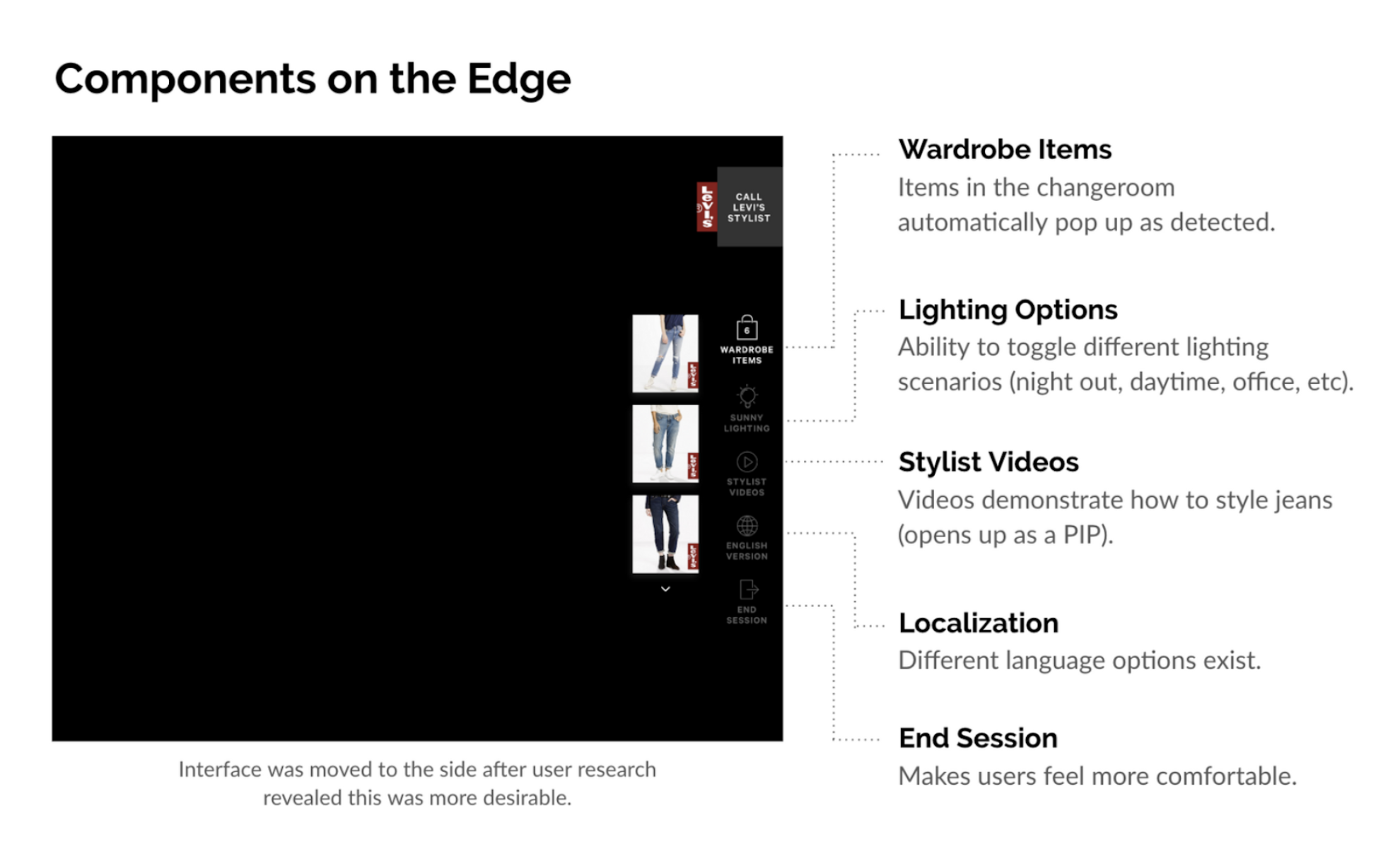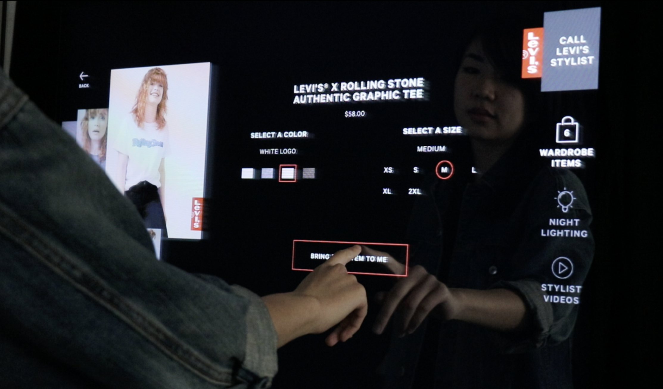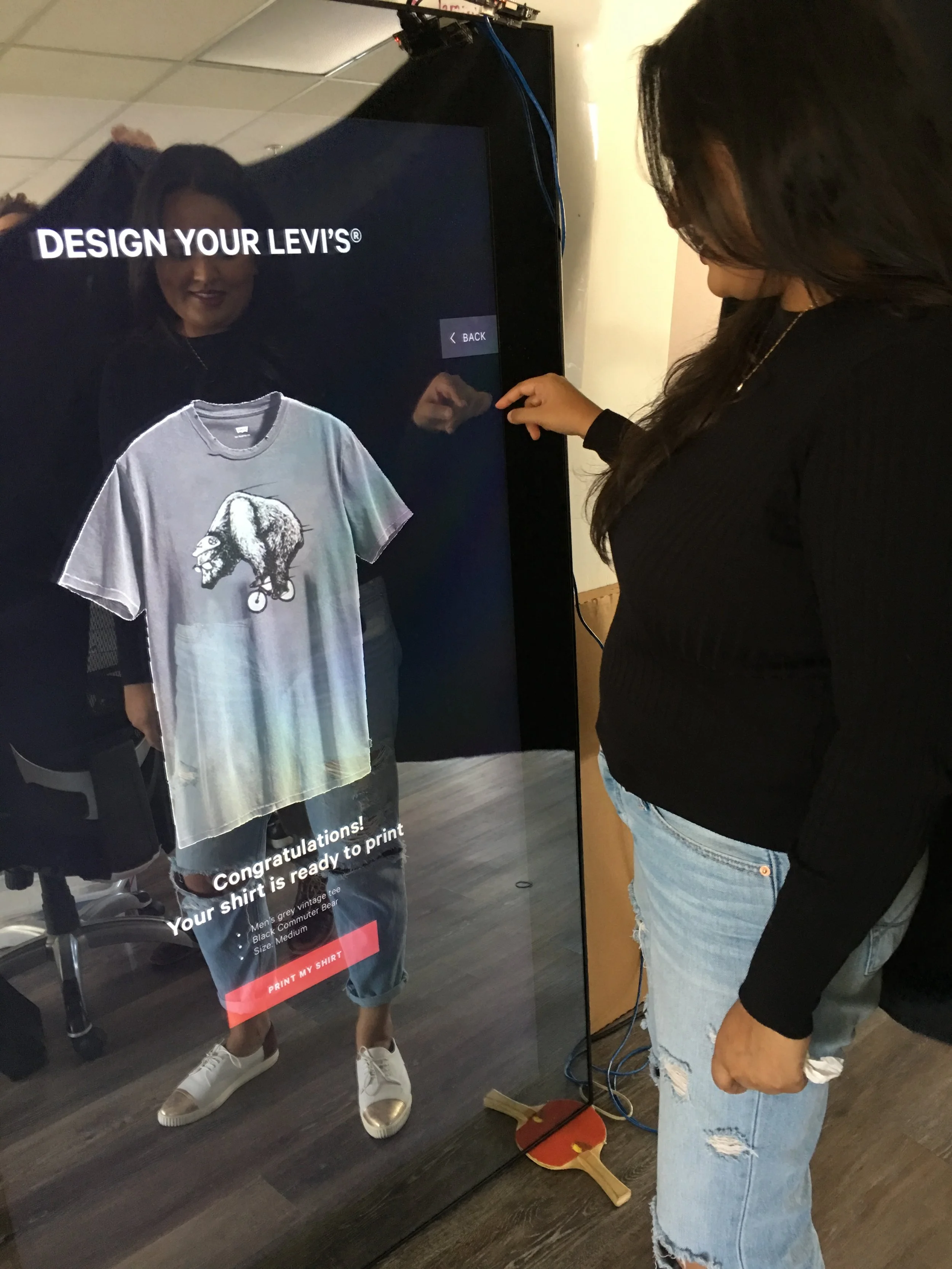RFID-enabled smart mirror that offered styling recommendations, size requests, and product discovery directly in-room. The solution improved customer engagement, streamlined the try-on process, empowered store associates, and positioned Levi’s as a leader in tech-enabled retail innovation.